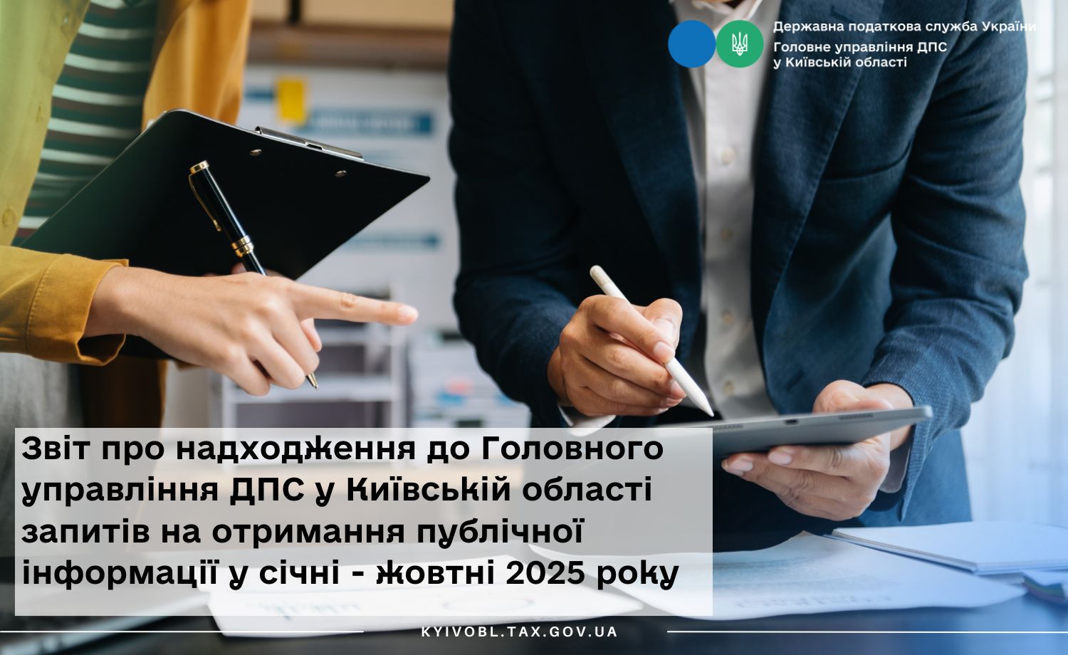 Звіт про надходження до Головного управління ДПС у Київській області запитів на отримання публічної інформації у січні - жовтні 2025 року