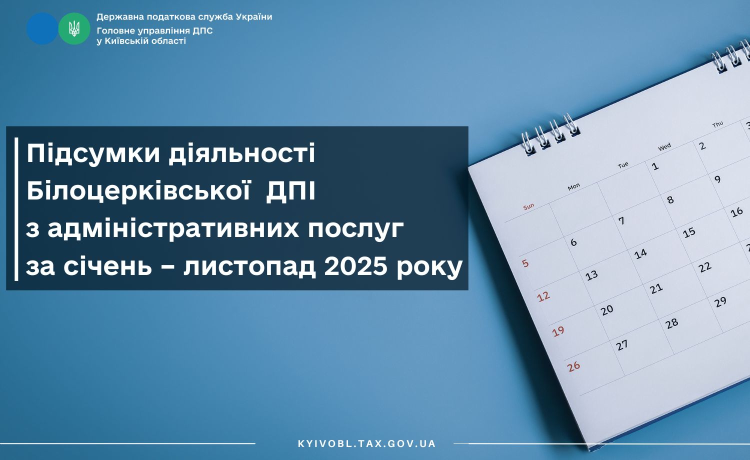 Підсумки діяльності Білоцерківської ДПІ за основними напрямками за січень - листопад 2025 року