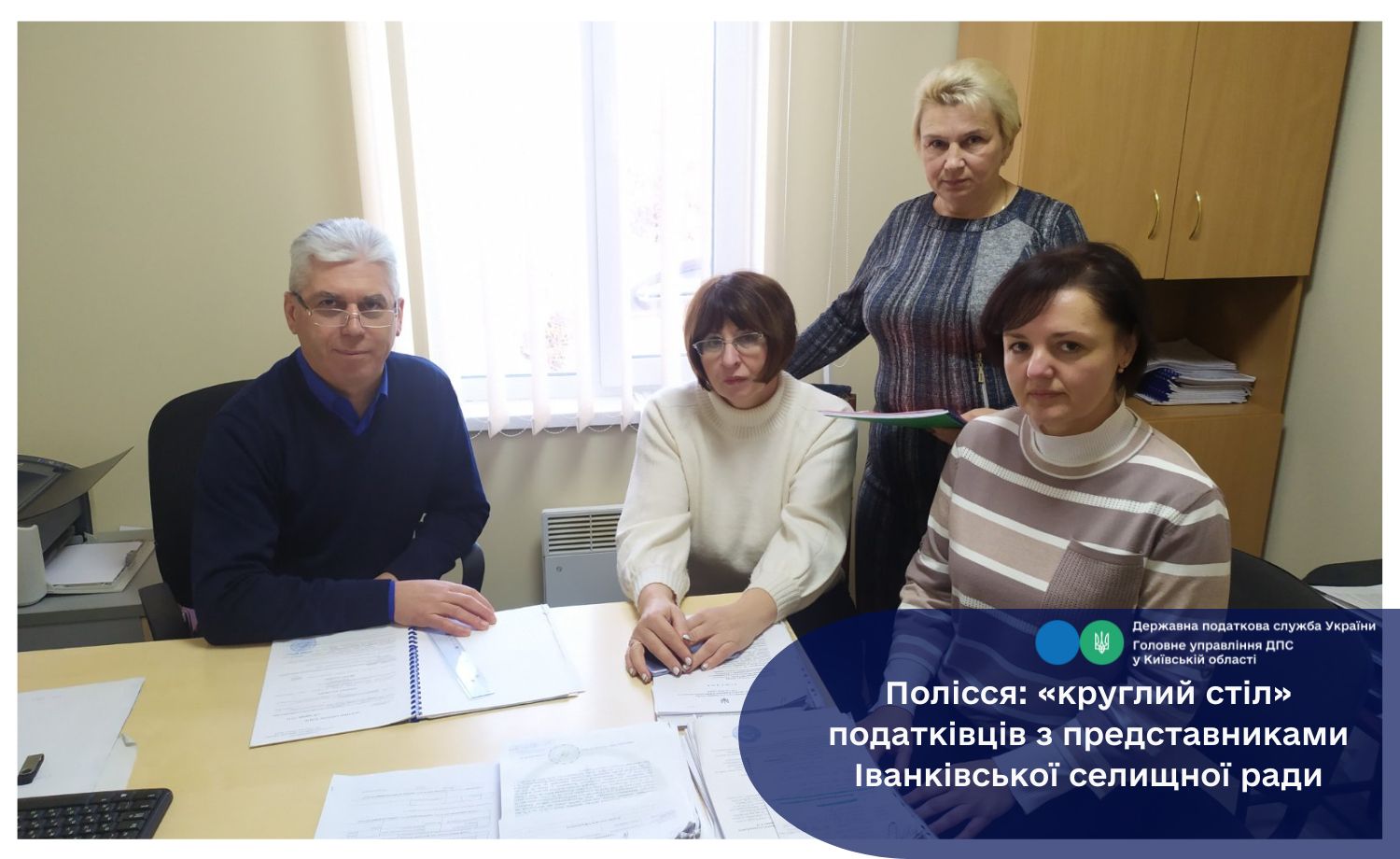 Начальник Іванківсько-Поліської ДПІ Ірина Гордієнко провела чергову робочу зустріч з начальником відділу з питань агропромислового розвитку та регулювання земельних відносин Іванківської селищної ради Анатолієм Циганком та головними спеціалістами відділу Наталією Сергієнко та Наталією Тороповою на тему: «Порядок оподаткування податком на доходи фізичних осіб і військовим збором доходу у вигляді благодійної допомоги, яка виплачується внутрішньо переміщеним особам. Новації податкового законодавства щодо застосування та використання РРО/ПРРО».