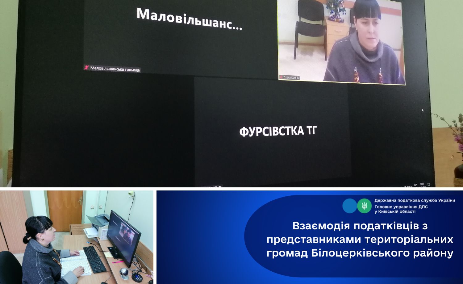 У рамках постійної взаємодії контролюючих органів з територіальними громадами, виконуюча обов’язки начальниці Білоцерківського відділу податків і зборів з фізичних осіб та проведення камеральних перевірок управління оподаткування фізичних осіб ГУ ДПС у Київській області, Леся Кравченко, провела чергову зустріч у форматі відеоконференцзв’язку на платформі Zoom. Обговорили новації у податковому законодавстві та стан наповнення місцевого бюджету громад.