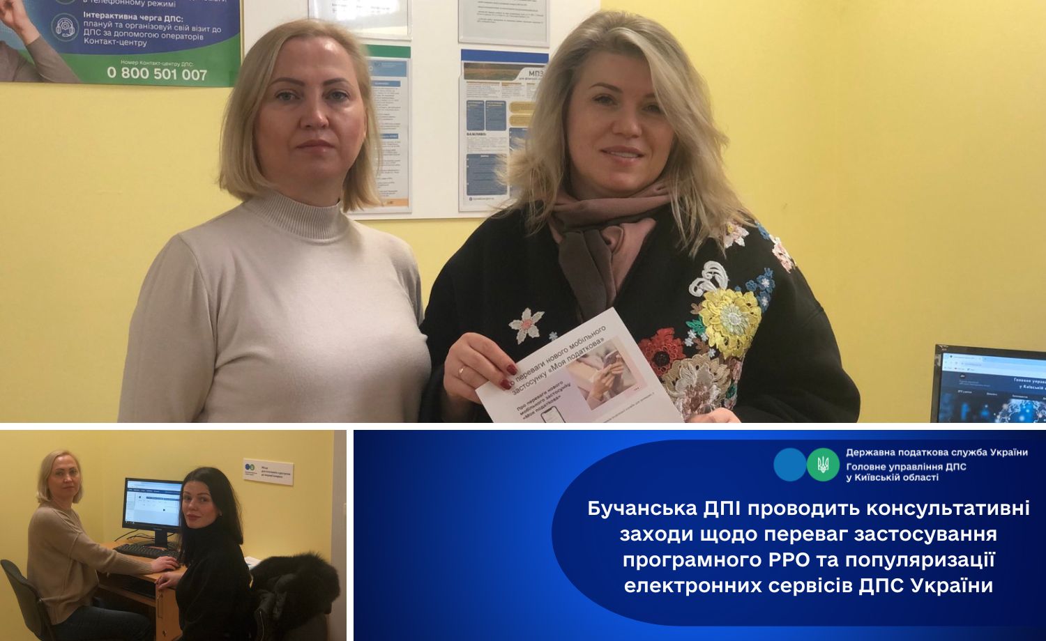 Очільниця Бучанської ДПІ Людмила Ступак продовжує проводити інформаційні - роз’яснювальні заходи з фізичними особами – підприємцями Бучанщини щодо новацій прийнятих Законом України від 30 червня 2023 року № 3219-IX "Про внесення змін до Податкового кодексу України та інших законів України щодо особливостей оподаткування у період дії воєнного стану", в частині інформування суб’єктів господарювання про переваги використання програмного реєстратора розрахункових операцій,порядком йогореєстраціїчерез сервіс ДПС України "Електронний кабінет платника податків" та процесу встановлення безкоштовного програмного забезпечення, яке знаходиться на офіційному вебпорталі ДПС України. Крім того,податківець ознайомлювала підприємців,що для зручності платників ДПС України введено новий безкоштовний мобільний додаток "Моя податкова", який дозволяє в реальному часі дізнатися про наявність чи відсутність податкового боргу, подати податкову звітність та сплатити податки до бюджету, тощо.