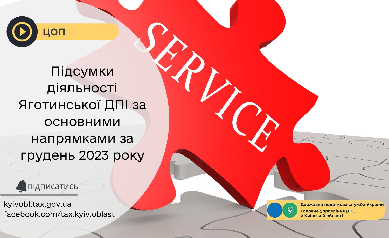 Надання адміністративних послуг Яготинською ДПІ у грудні 2023 року