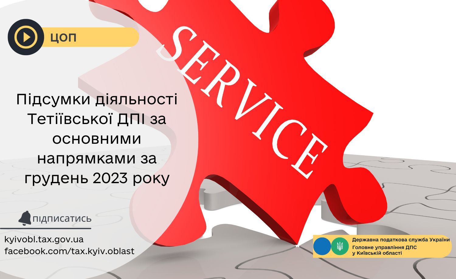 Відповідно до Регламенту діяльності ЦОП, Положення про центр обслуговування платників Тетіївської ДПІ, працівниками Тетіївської ДПІ у грудні місяці видано 196 карток платника податків, 9 відомостей з Державного реєстру фізичних осіб-платників податків про суми/джерела виплачених доходів та утриманих податків, зареєстровано 23 платник єдиного податку, видано 27 витяг з реєстру платників єдиного податку, зареєстровано 4 реєстраторів розрахункових операцій, зареєстровано 2 книг обліку розрахункових операцій, зареєстровано 2 розрахункову книжку.