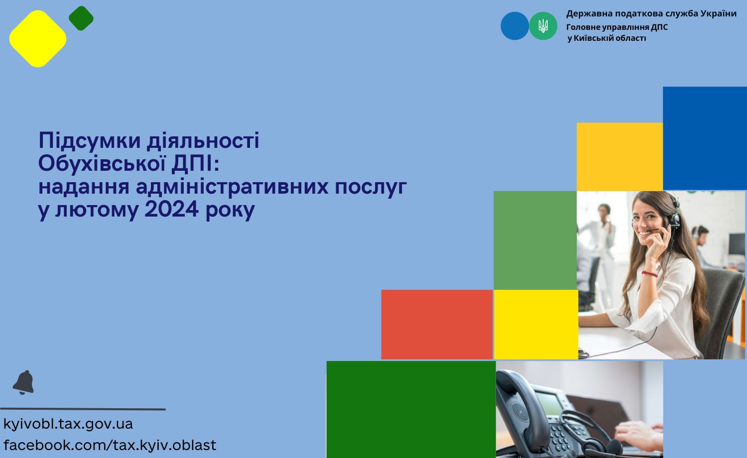 За лютий 2024 року Обухівською ДПІ ГУ ДПС у Київській області надано 694 адміністративні послуги. Найбільшим попитом користується адміністративна послуга з видачі картки платника податків, внесення до паспорта громадянина України даних про реєстраційний номер облікової картки платника податків з Державного реєстру фізичних осіб – платників податків. Протягом лютого 2024 року видано 288 карток платників податків та внесення змін до реєстраційного номера облікової картки платника податків Державного реєстру фізичних осіб – платників податків. Видано відомостей з Державного реєстру фізичних осіб – платників податків про суми/джерела виплачених доходів та утриманих податків у кількості – 54 довідки. Внесено до паспорта громадянина України (у формі книжечки) відмітки про наявність права здійснювати будь-які платежі за серією та номером паспорта – 1 відмітка.