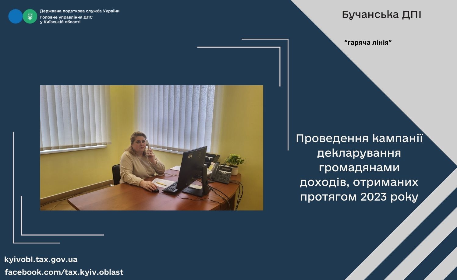 Заступник начальника Бучанської ДПІ Валентина Мусієнко провела сеанс телефонного зв’язку «гаряча лінія», де відповідала додзвонювачам на численні запитання щодо проведення кампанії декларування громадянами доходів, отриманих протягом 2023 року.