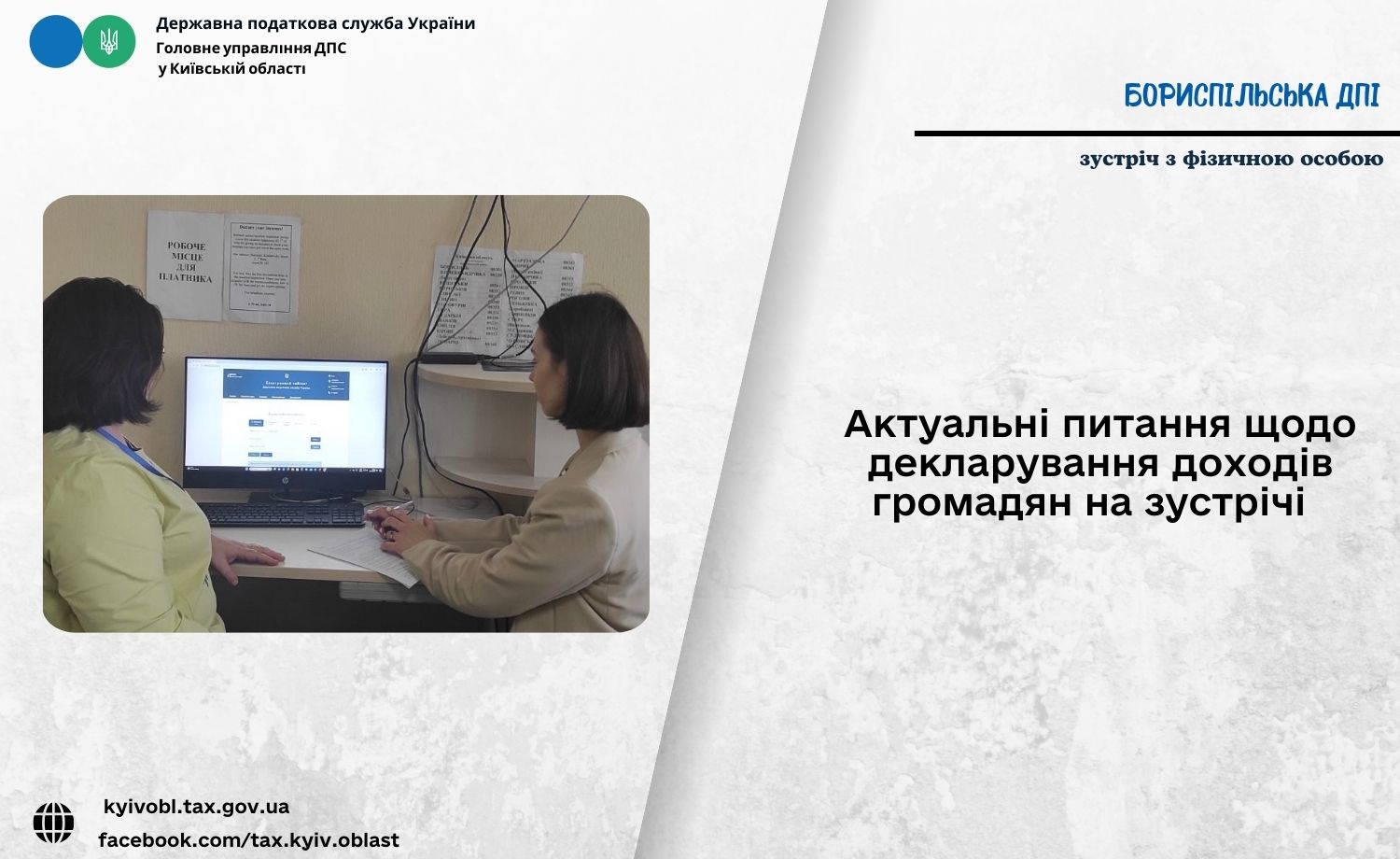 Нещодавно в Бориспільській ДПІ відбулася зустріч з фізичною особою за участі начальника відділу податкових сервісів Марини Киричок щодо особливостей декларування доходів громадян, отриманих у 2023 році.