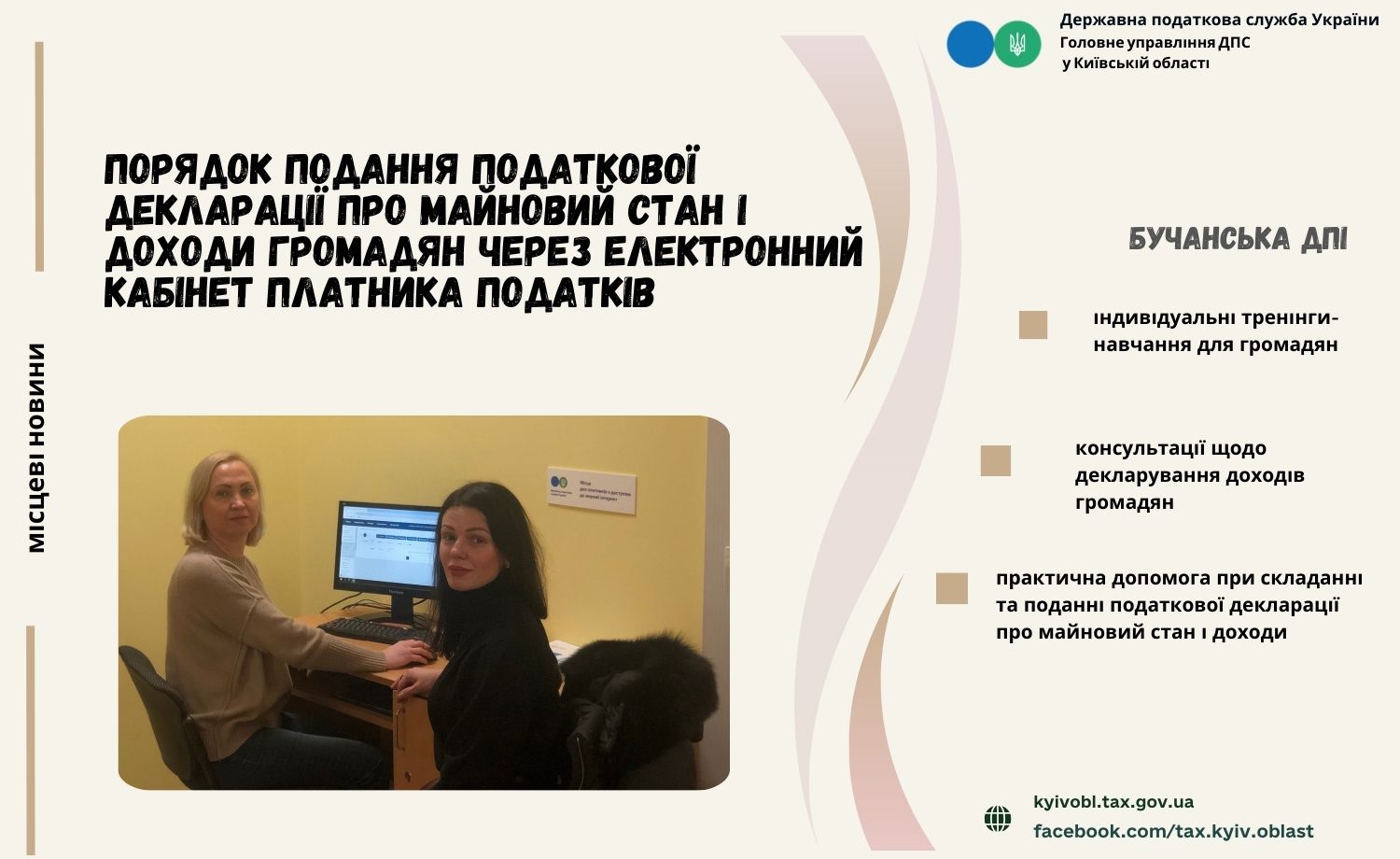 Бучанська ДПІ проводить тренінги - навчання щодо порядку подання податкової декларації про майновий стан і доходи громадян через Електронний кабінет платника податків