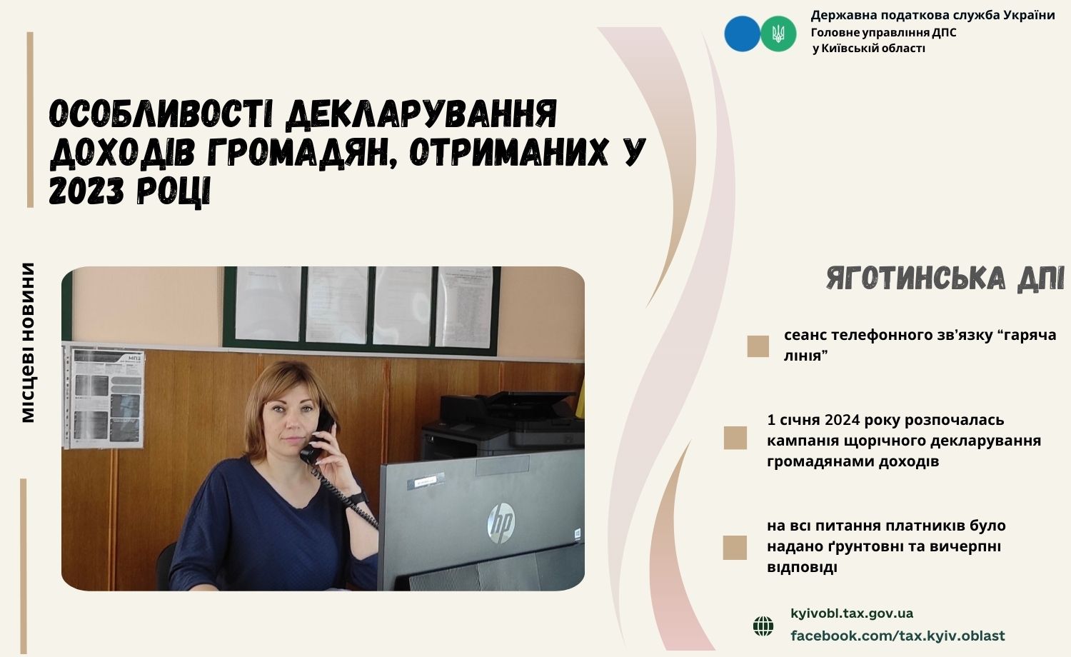 В Яготинській ДПІ відбувся сеанс телефонного зв’язку «гаряча лінія» за участі заступника начальника ДПІ Віти Саси.