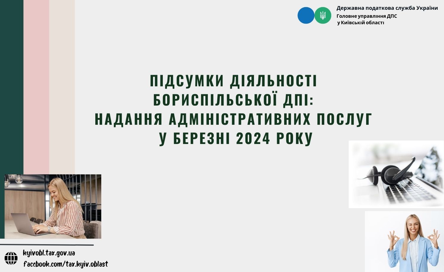 У Бориспільській ДПІ ГУ ДПС у Київській області за березень 2024 року платникам податків надано 1438 адміністративних послуг.