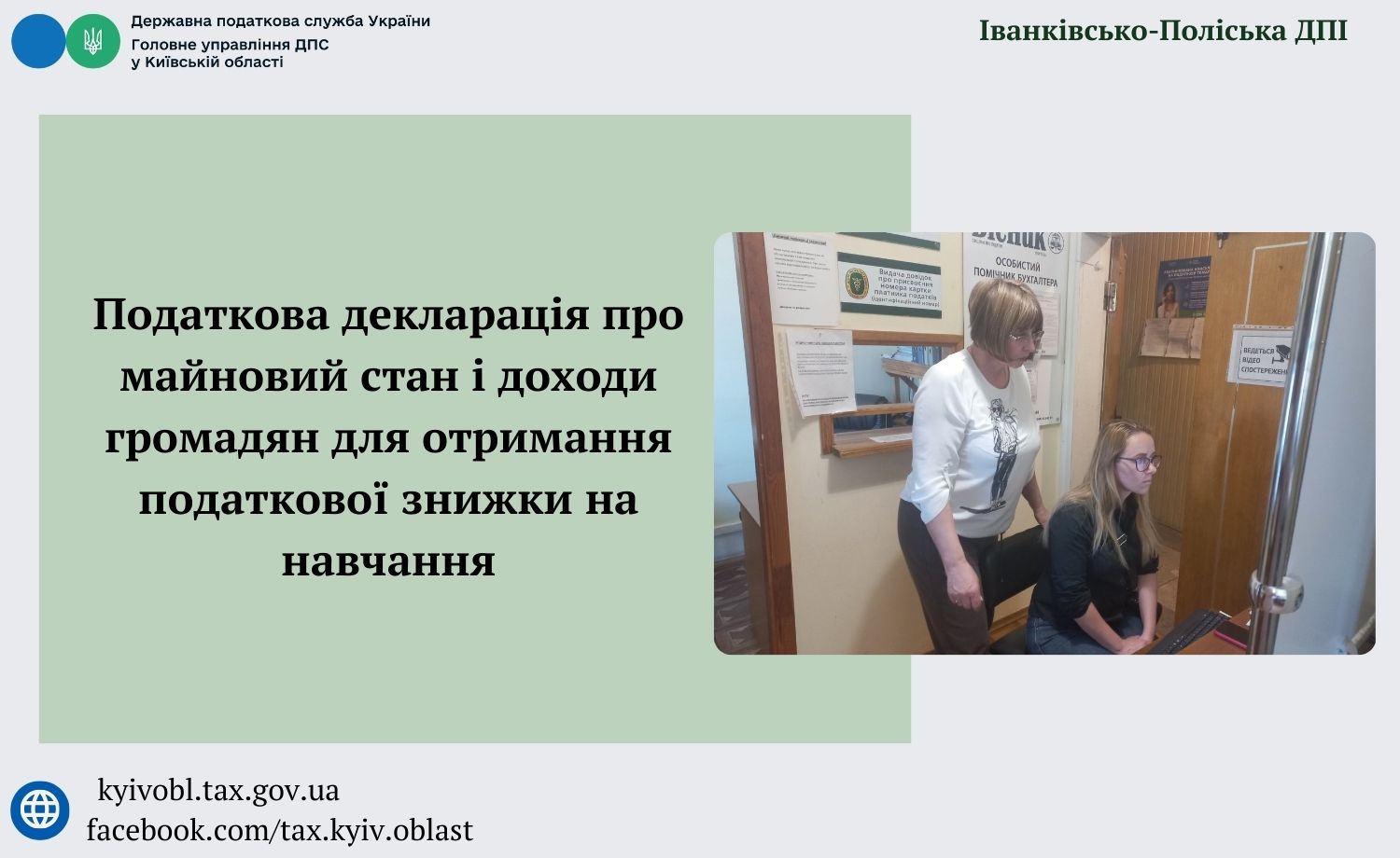 Іванківсько-Поліська ДПІ проводить практикуми з платниками податків щодо подання податкової декларації про майновий стан і доходи громадян для отримання податкової знижки на навчання