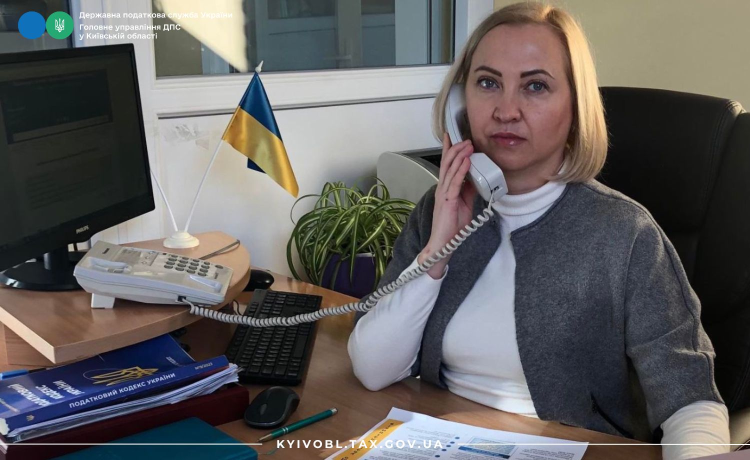 У приміщенні Бучанської ДПІ ГУ ДПС у Київській області під час телефонного спілкування начальник проінформувала фізичних осіб–підприємців, що з 1 січня 2026 року для фізичних осіб – підприємців, які перебувають на першій та другій групах спрощеної системи оподаткування, застосовуватимуться оновлені розміри ставок єдиного податку та військового збору.