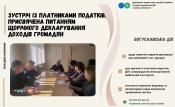У Богуславській ДПІ сьогодні відбулась чергова зустріч з платниками податків, присвячена питанням щорічного декларування доходів громадян, під час якої начальник ДПІ Вікторія Підопригора проінформувала громадян щодо термінів подання декларації про майновий стан і доходи, можливостей її подання в електронному вигляді, у тому числі з метою отримання податкової знижки, а також щодо сервісів, доступних у мобільному застосунку «Моя податкова».