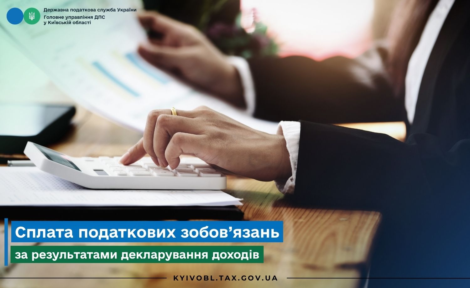 Головне управління ДПС у Київській області нагадує громадянам про необхідність своєчасної сплати податкових зобов’язань, визначених у поданій декларації про майновий стан і доходи.