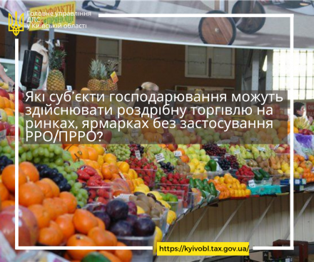 Граничний розмір річного обсягу розрахункових операцій з продажу товарів (надання послуг), у разі перевищення якого застосування РРО та/або ПРРО є обов’язковим, зокрема, для роздрібної торгівлі на ринках, ярмарках (за винятком розташованих на їх території магазинів, кіосків, палаток, павільйонів, приміщень контейнерного типу) встановлено у розмірі 500 тис. грн. на один суб’єкт господарювання - п. 2 Постанови № 1336 .