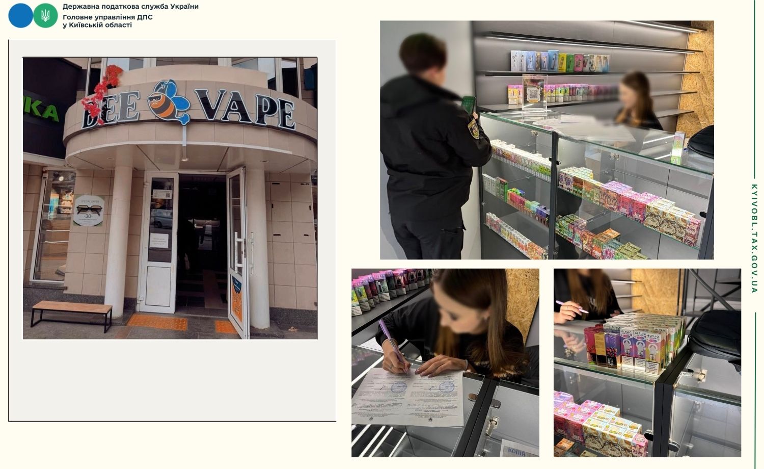 У рамках протидії ринку нелегального обігу тютюнових виробів, співробітниками відділу фактичних перевірок управління податкового аудиту ГУДПС у Київській області, заходами податкового контролю встановлено, що у м. Васильків на декілька господарських об’єктах здійснюється продаж рідин для електронних сигарет з нікотином з численними порушеннями вимог податкового законодавства.