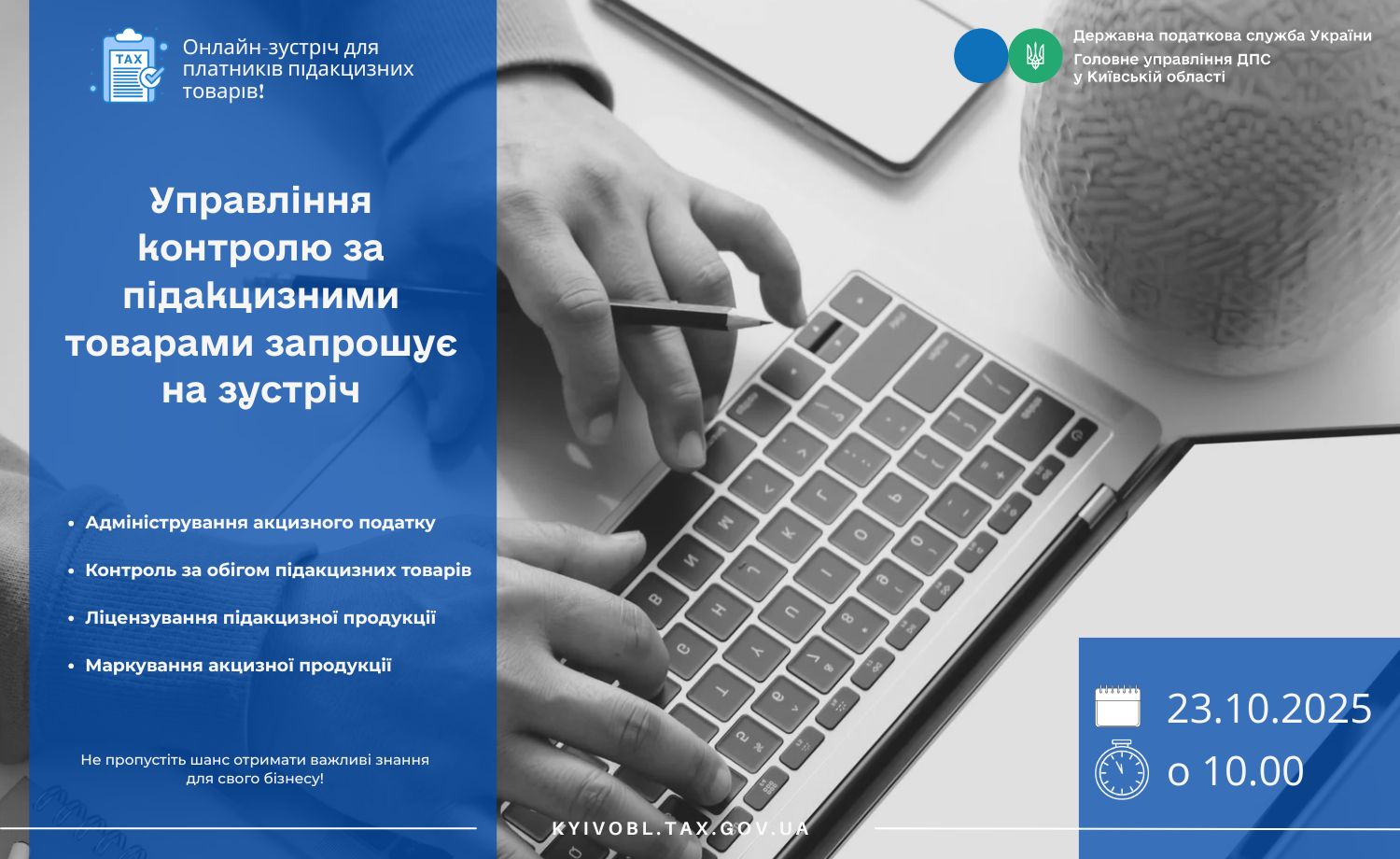 Запрошуємо приєднатися до онлайн-зустрічі з питань ліцензування, обліку та оподаткування підакцизних товарів. Наші фахівці поділяться актуальною інформацією та розкажуть про практичне застосування податкових норм.