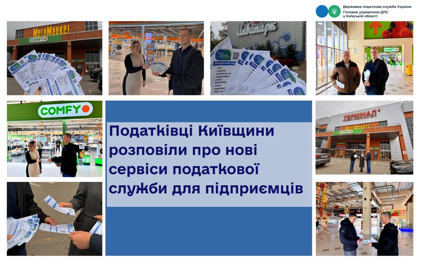 Фахівці Головного управління ДПС у Київській області відвідали торговий центр у Броварах, де провели виїзний інформаційний захід для місцевих підприємців і покупців. Говорили про роботу Офісів податкових консультантів, сучасні онлайн-сервіси ДПС та переваги електронного листування з податковою службою.