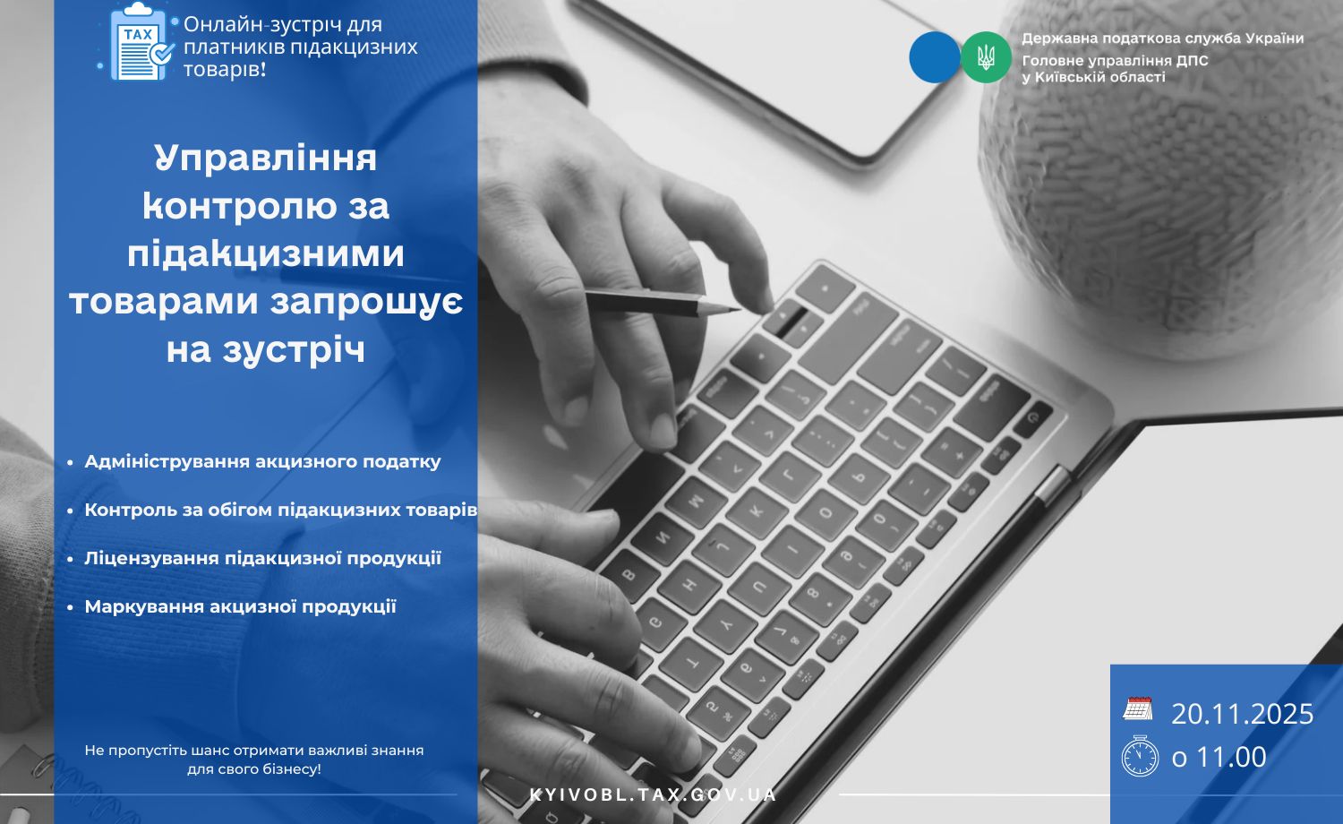 Запрошуємо приєднатися до онлайн-зустрічі з питань ліцензування, обліку та оподаткування підакцизних товарів. Наші фахівці поділяться актуальною інформацією та розкажуть про практичне застосування податкових норм.