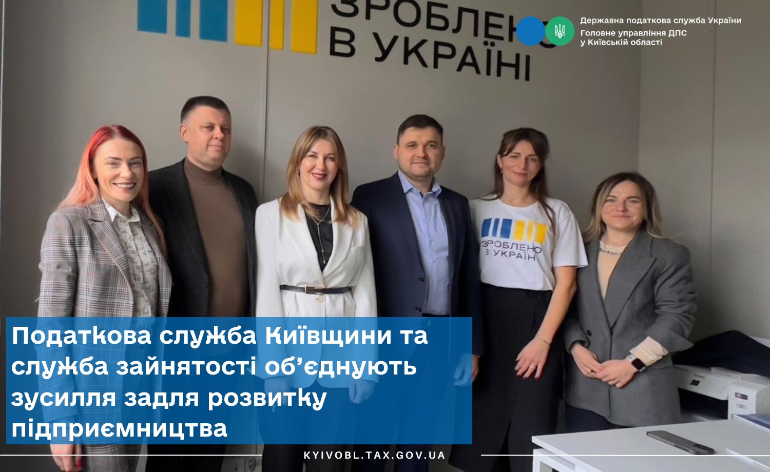 Днями начальник Головного управління ДПС у Київській області Олександр Двірко разом із керівником Київського обласного центру зайнятості Денисом Дармостуком здійснили робочий візит до Офісу «Зроблено в Україні» на базі Ірпінського міського центру зайнятості та до Офісу податкових консультантів у місті Буча.
