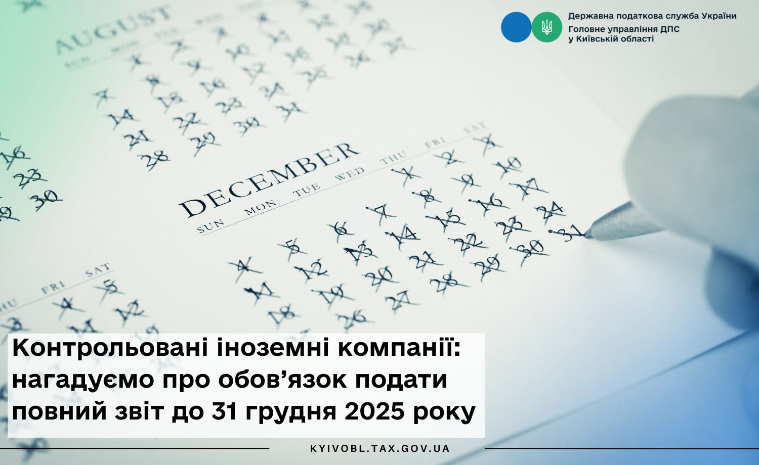 - Контрольовані іноземні компанії: нагадуємо про обов’язок подати повний звіт до 31 грудня 2025 року