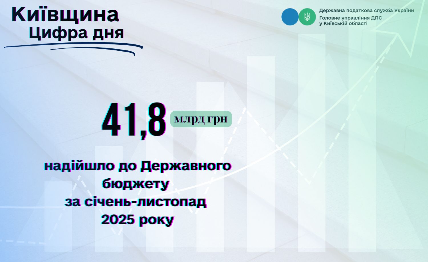 Головне управління ДПС у Київській області підбиває підсумки надходжень до державного бюджету за січень–листопад 2025 року. За цей період від платників регіону перераховано 41 838,8 млн грн.