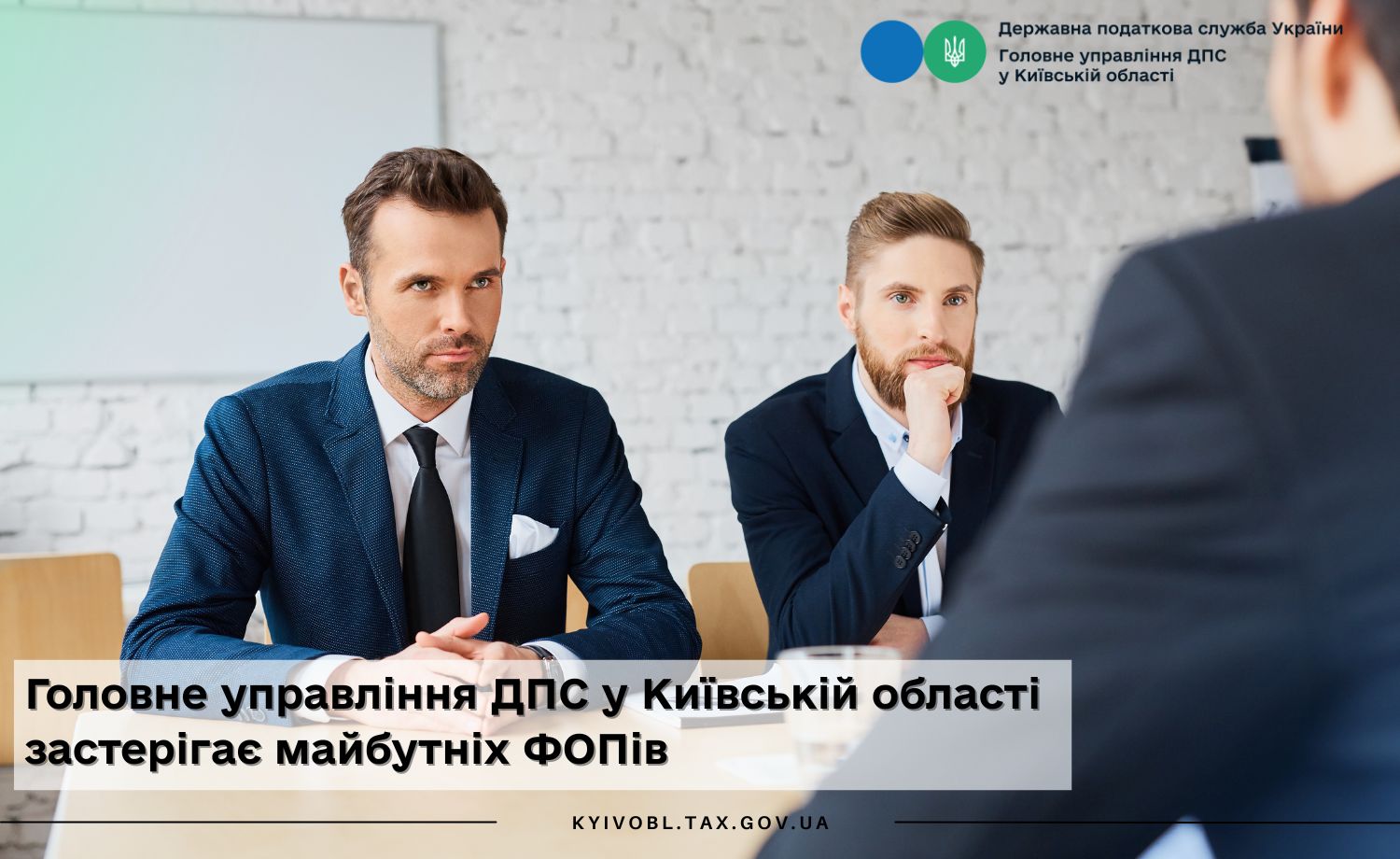 Головне управління ДПС у Київській області застерігає осіб, які погодилися на пропозицію представників окремого бізнесу, зареєструвати себе в якості фізичної особи – підприємця (ФОП) за так звану винагороду та сприяти такому бізнесу.