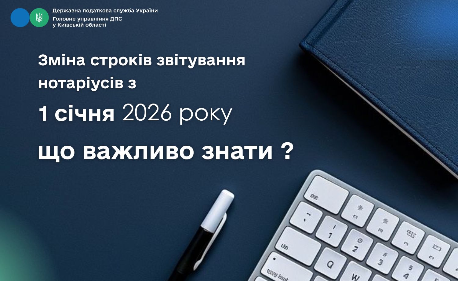 Головне управління ДПС у Київській області повідомляє, що з 1 січня 2026 року набирають чинності зміни до Податкового кодексу України, які оновлюють порядок і строки подання нотаріусами інформації про посвідчені договори та видані свідоцтва про право на спадщину.