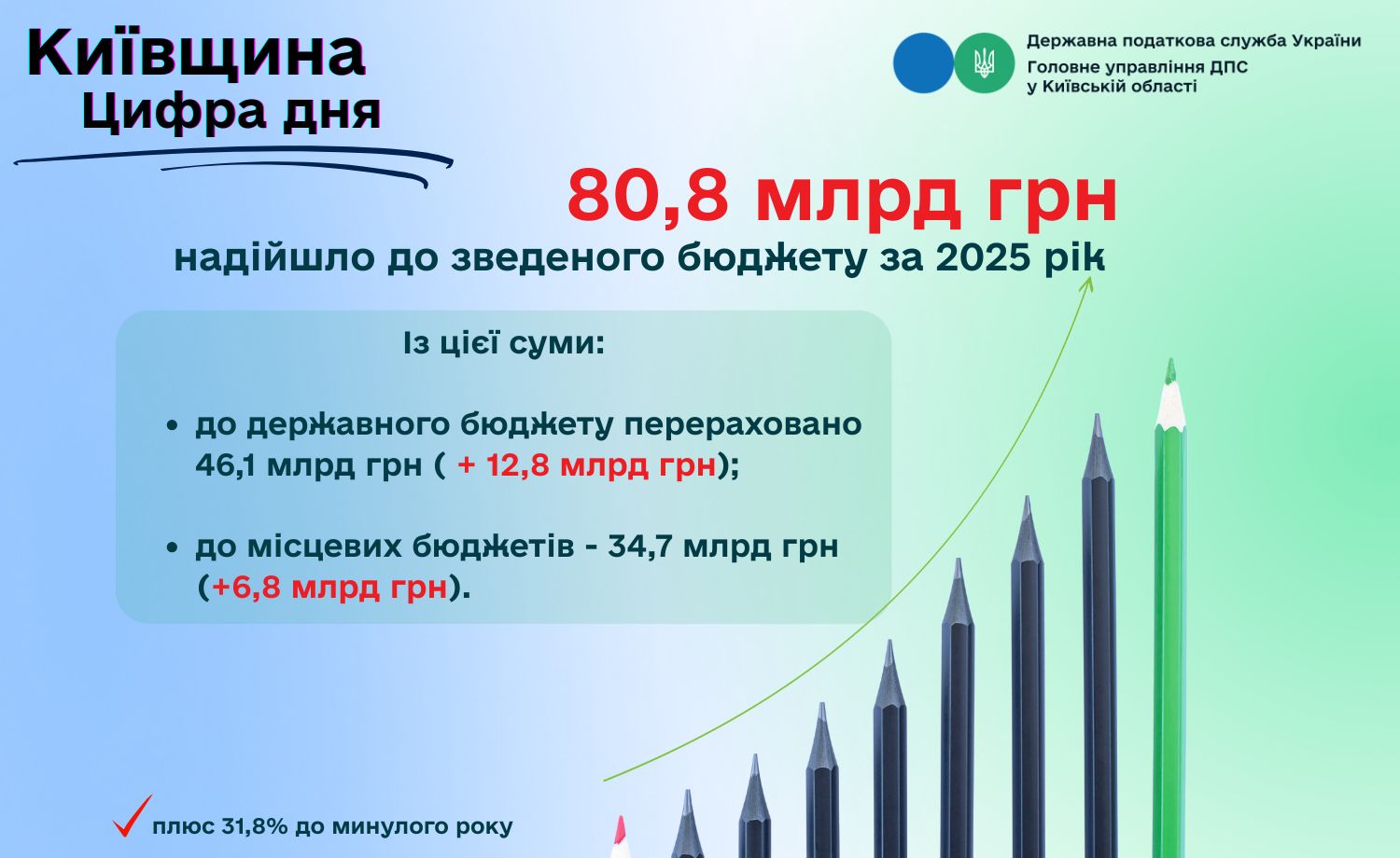 За підсумками 2025 року надходження до зведеного бюджетів від платників Київської області зросли майже на 32% порівняно з минулим роком, що дало змогу забезпечити додатковий фінансовий ресурс для держави та територіальних громад, повідомив начальник Головного управління ДПС у Київській області Олександр Двірко.