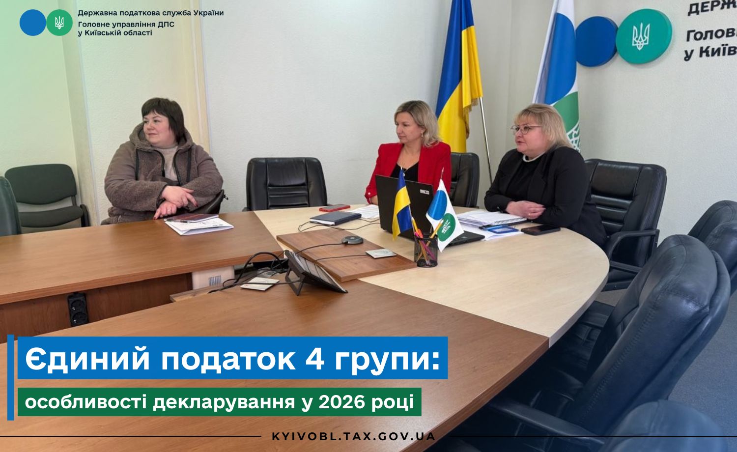 Головне управління ДПС у Київській області провело інформаційну зустріч із платниками єдиного податку четвертої групи щодо особливостей кампанії декларування у 2026 році. Захід відбувся у змішаному форматі: офлайн та онлайн, що дало можливість долучитися більшій кількості платників Київщини. Під час зустрічі начальник управління оподаткування юридичних осіб Олена Халіцька та заступник начальника відділу аналітичної роботи оподаткування юридичних осіб Наталія Асмаковець детально роз’яснили порядок подання звітності та звернули увагу на ключові аспекти кампанії. Нагадаємо, що 20 лютого 2026 року завершується кампанія декларування для платників єдиного податку 4 групи. Для обрання або підтвердження статусу платника на 2026 рік сільськогосподарські товаровиробники мають своєчасно подати загальну та звітні податкові декларації, необхідні додатки, зокрема розрахунок частки сільськогосподарського товаровиробництва, відомості про наявність земельних ділянок та розрахунок мінімального податкового зобов’язання (МПЗ). Окрему увагу під час заходу приділено порядку визначення МПЗ, застосуванню коефіцієнта 0,057 при розрахунку за 2025 рік та мінімальним граничним показникам на період дії воєнного стану. Також учасникам роз’яснено зміни податкового законодавства 2026 року щодо декларування податку на прибуток юридичними особами - платниками єдиного податку четвертої групи у разі отримання окремих видів доходів. Фахівці податкової служби відповіли на актуальні запитання платників та надали практичні рекомендації щодо правильного заповнення декларацій. ГУ ДПС Київщини продовжує відкритий діалог із бізнесом та нагадує про важливість своєчасного подання звітності і належного виконання податкових зобов’язань.