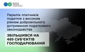 Перелік платників податків з високим рівнем добровільного дотримання податкового законодавства збільшився на 489 суб’єктів господарювання